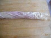 切去边角不整齐的部分,将油皮轻轻卷成一卷,最外面一层粘少许清水粘牢。