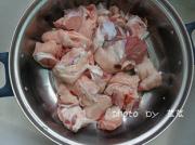 锅里烧开水后,放入几片姜片,1勺料酒,猪蹄放进去煮5分钟左右,去除血沫和脏东西。