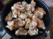 锅里倒少量的油爆香姜蒜后把猪蹄放入。