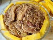 五花肉、绍酒1茶匙、酱油1汤匙、甜面酱、鸡粉、白糖、葱姜末。