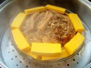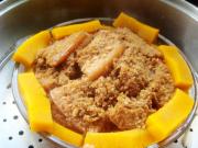 锅里放水烧开,放入南瓜蒸肉。