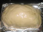 鸡用荷叶包好后,再摊开面,把鸡包裹在放里面。