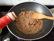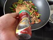 放入炒好的牛肉,调入盐和黑胡椒粉炒匀出锅。