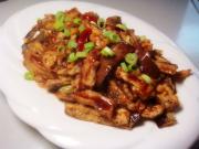 待茄条皮酥呈金黄色时,捞出滤干油待用。