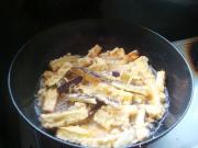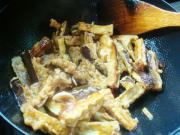 用水淀粉勾芡,把炸好的茄条放入锅中快速拌匀即可。