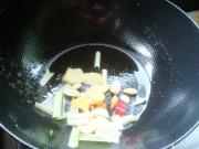 放入豆瓣酱翻炒,加少量水、鸡精、酱油、糖、醋、盐勾成鱼香味。