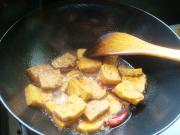 锅里放油,5成热放入豆腐。