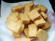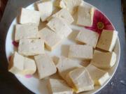 先把豆腐切成片状。