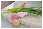 备好葱花,虾仁,鸡蛋,粉丝,猪肉。