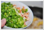 再将葱花,虾仁,炸过的香菇下锅,小火微拌至入味出香。