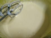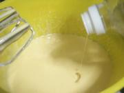 用隔水加热法 将蛋黄打至发白,成为淡黄酱一样的状态。