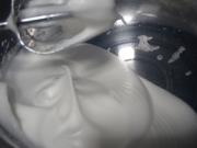 蛋白倒入盘中。
