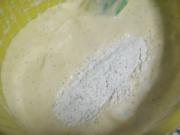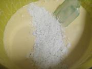 搅拌七次左右 将另一半的蛋白酥原料倒在面粉没有充分搅拌处,重复相同动作。