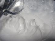 将奶油打发至硬性发泡 直立小尖状态。