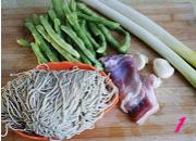 主料:手擀面、豆角配料:蒜、葱、肉。