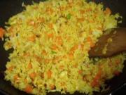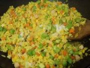 翻炒把米饭炒散染色。