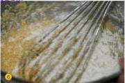 接下来加入牛奶的半量,然后把剩下的面粉加入。