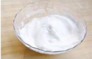将蛋白加入柠檬汁用打蛋器打起大泡,分三次加入白砂糖,将蛋白打发至湿性发泡(8分发)即可。此时,烤箱预热150度。