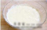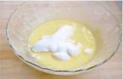 将蛋白分三次和奶酪糊混合均匀倒入模具。