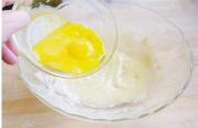 隔水加热装有奶油奶酪的大碗,搅拌至细滑无颗粒,然后一个一个加入蛋黄并拌匀。