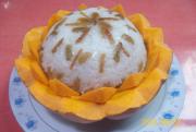 最后,取下饭碗便形成“南瓜年糕八宝莲”;