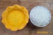 先将南瓜扣在八宝年糕饭碗上,