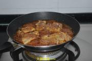 待两面金黄后浇入照烧酱汁,用小火收汁,中间要不停的搅动,汁不必全部收干,留一点浇到米饭上会更好吃。