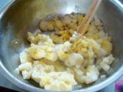 再打入一枚鸡蛋,同样操作,使鸡蛋和熟面充分融合为一体。