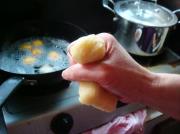 待膨胀浮起,呈金黄色即熟,捞出晾凉。