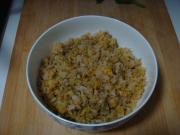 肉馅中放入香油50克拌均,加盐、十三香,淹制,待用。