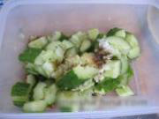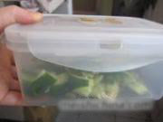 把黄瓜装在带有盖子的保鲜盒里,放上所有调料