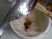 乘热倒入刚才已经添加好调味的萝卜丝中