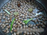 锅里放入泡过的花生米大料、葱段、姜片,中火煮10分钟出锅前放少许盐。