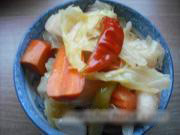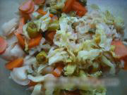 花生米和切好的泡菜拌匀,倒入少许鸡精,生抽,糖,香油,和小葱,是一道很可口的下饭小菜酸甜适中。