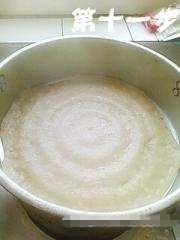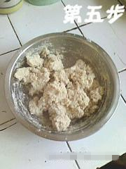 盆里放上莜面,用木铲朝一面拍齐,这样容易知道应该加入多少水