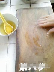 在案板上抹上油,为防止莜面沾到板上