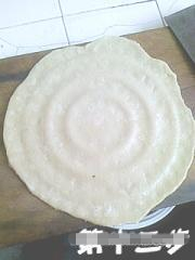 将莜面扞成面片,记得小心一些,因为莜面没有筋骨,容易烂