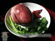 选新鲜猪心一个,香菜两棵,干红辣椒5、6个