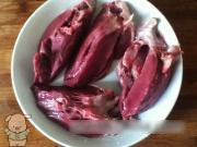 把猪心清洗干净,切成四瓣。炒勺放水烧开,放入猪心,煮沸去浮沫,加料酒、鸡精、糖、八角、花椒、老抽、生抽、葱段、姜片各少许,先大火煮十分钟,再改小火炖三十分钟