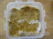 烫好的白菜放在没有油的容器里,趁热在上面抹上冷却的芥末粉