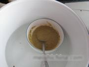 芥末粉放到碗里,用开水烫一下,然后放到凉水里冷却
