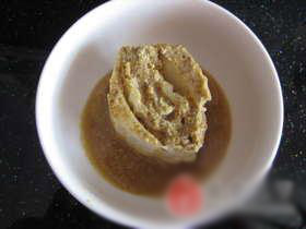 成品芥末墩,吃的时候用没有油的筷子夹出来,然后倒出来点汤,里面放点盐,溶解以后淋在芥末墩上,味道真的不错哦。
