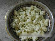 把菜花掰成小朵,我觉得用手掰的比刀切的好吃