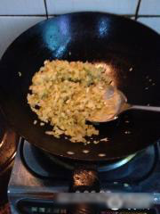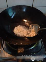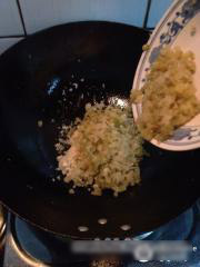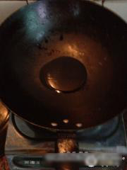冒烟后,下榨菜丁翻炒,两、三分钟后盛出