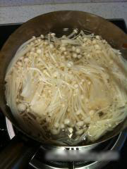 锅里水烧开,加入金针菇,煮熟,水开,2-3分钟就好。
