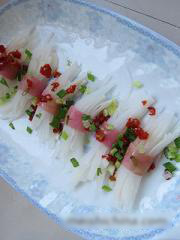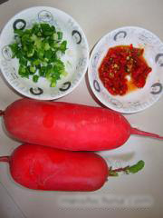 “萝卜是中医首推的养生菜。。。常言道“冬吃萝卜夏吃姜,一年四季保安康”!萝卜看似平常的菜,却是中医首推的冬季养生菜啊~~ 元代诗人为了赞美萝卜还写下了这样的诗句“熟食甘似芋,生吃脆如梨。老病消凝滞,奇功真品题”。 萝卜的种类很多,常见的有红萝卜、青萝卜、白萝卜、水萝卜和心里美等。 今天我用红萝卜做了一道开胃的小菜,喜欢的朋友不防自己动手试试啊~~!! 下面给大家哆嗦下萝卜的营养成分啊。。 萝卜性平,味辛、甘,入脾、胃经、具有消积滞、化痰止咳、下气宽中、解毒等功效,主治食积胀满、痰嗽失音、吐血、衄血、消渴、痢疾、偏头痛等。萝卜还含有能诱导人体自身产生干扰素的多种微量元素,可增强机体免疫力,并能抑制癌细胞的生长,对防癌,抗癌有重要意义。萝卜中的芥子油和膳食纤维可促进胃肠蠕动,有助于体内废物的排出。 常吃萝卜可降低血脂、软化血管、稳定血压,预防冠心病、动脉硬化、胆石症等疾病; 但弱体质者、脾胃虚寒、胃及十二指肠溃疡、慢性胃炎、单纯甲状腺肿、先兆流产、子宫脱垂者不宜多食。 中医认为萝卜有消食、化痰定喘、清热顺气、消肿散淤之功能。 大多数幼儿感冒时出现喉干咽痛、反复咳嗽、有痰难吐等上呼吸道感染症状。多吃点爽脆可口、鲜嫩的萝卜,不仅开胃、助消化,还能滋养咽喉,化痰顺气,有效预防感冒。所以萝卜的好外还是蛮多的~! 下面说说我用的红萝卜的十大功效:萝卜功效一:防癌、抗癌 美国癌症研究机构报道,根据各国肿瘤流行病学的资料分析,萝卜、白菜等十字花科蔬菜是所有食物中最佳的防癌、抗癌食物,其中对肺癌、胃癌、肝癌、喉癌、食管癌、结肠癌、直肠癌、乳腺癌和膀胱癌的预防作用最为明显。红萝卜之所以能够抗癌、防癌是因为它含有如下一些特殊的成分:1.萝卜硫素,据美国约翰霍普金医学院研究,红萝卜中还含有一种植物性化学物质萝卜硫素,它是存在于很多种十字花科蔬菜里的一种生物活性化合物。萝卜硫素可能是目前发现的所有天然抗癌物质里,效力最强、效果最好者。它能刺激细胞制造产生较高II型脢(有益脢),使细胞形成对抗外来致癌物侵蚀的膜。2.维生素A ,红萝卜含有大量的维生素A,它是保持细胞间质的必需物质,起着抑制癌细胞生长的作用。美国及日本医学界报道,红萝卜中的维生素A可使已经形成的癌细胞重新转化为正常细胞。3.糖化酵素、红萝卜含有一种糖化酵素,能分解食物中的亚硝胺,可大大减少该物质的致癌作用。4.木质素、红萝卜中有较多的木质素,能使体内的巨噬细胞吞吃癌细胞的活力提高二至四倍。5.硫莱菔子素、英国科学家发现红萝卜中含有一种防癌化合物硫莱菔子素,它能启动人体内的防御功能。萝卜功效二: 抗痛风 抗风使者发现,红萝卜对痛风有特效,这是因为红萝卜属碱性食品,是一种基本上不含嘌呤的蔬菜。唐?孟诜说:萝卜“甚利关节”;《食性本草》认为萝卜能“行风气,去邪热,利大小便”;《随息居饮食谱》也说它能“御风寒”。红萝卜中含有丰富的活性酶,生食可有效的促进嘌呤的代谢,红萝卜中还含有大量的钾、磷、钙、铁、维生素K、Vc等物质,这样就可以有效地提高血液质量、碱化血液并有利尿、溶石作用,对痛风患者十分有利。红萝卜具有有超强促进肝、肾代谢的功能,它能快速协调五脏平衡,在肽核酸PNA的作用下将长期沉积在体内各部的痛风结石分解成水、二氧化碳和可溶性的钠盐。长期食用大红萝卜可补充肝脏内的转移酶,有效纠正嘌呤代谢紊乱,调节尿酸,平衡血尿酸的浓度,缓解并消除痛风发作处的炎症,防止再次形成结石,从而达到治疗痛风的目的。 大红萝卜富含维生素K,这种维生素能抗尿酸盐结晶,有效防止骨头粗大。大红萝卜对胆结石、肾结石也有很好的预防和治疗效果。此外,红萝卜富含钾,为其他萝卜的几倍甚至几十倍。众所周知钾可以调节细胞内适宜的渗透压和体液的酸碱平衡,参于细胞内糖和蛋白质的代谢,这对痛风患者血尿酸值的调节十分有利。萝卜功效三:降血压 医务人员发现,医务人员发现,常生食红萝卜有神奇的降低血脂、胆固醇、软化血管、稳定血压的作用,并可预防冠心病、动脉硬化、肾结石、胆石症等疾病。同时,医学界认为红萝卜籽具有良好的降血压作用,它将会是一种疗效高、无毒副作用、很有希望的新型降压药物。其降压效果及改善疾病症状均高于利血平、复方降压片和罗布麻片等对照组。萝卜功效四:助消化 《名医别录》中对萝卜的药用便有记载:“其性凉味辛甘,入肺、胃二经,可消积滞、化痰热、下气贯中、解毒,用于食积胀满、痰咳失音、吐血、衄血、消渴、痢疾、头痛、小便不利等症”。现代医学研究发现红萝卜中还含有很多能帮助消化的甘酶、触酶、淀粉酶、糖化酶,因其为碱性,故可以快速中和胃酸,并且还含有促进胃肠蠕动、增进食欲的芥子油、膳食纤维等有益成分,所以餐后生食红萝卜可以快速的起到促进消化、解除胃酸、胃胀的神奇功效,对胃溃疡、十二指肠溃疡有很好的食疗效果。此外,还含有葡萄糖、氧化酶腺素、失水戊糖、气化黏液素、组织氨基酸、胆碱等成分。萝卜对链球菌、葡萄球菌、肺炎球菌、大肠杆菌均有抑制作用。日本科学家研究指出,红萝卜的辣味源自硫氰化物,它具有保护胃黏膜的功效。萝卜功效五:止咳、化痰