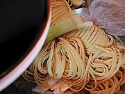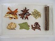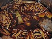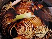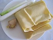把干豆皮、葱、姜、调料包及调味汁等放在汤锅里。大火烧开。