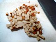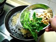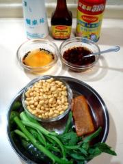 然后把黄豆煮熟,再把香干和芥兰汆烫一遍。