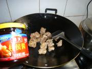 放一勺柱候酱炒到柱候酱出香味放少许盐下去,就可以关火了。