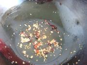 锅里油5分热,加蒜、辣椒、花椒爆香。